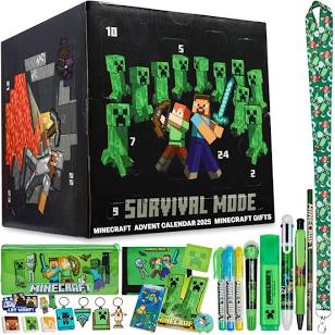 A calendar containing 24 days of Minecraft-themed stationery and accessories.