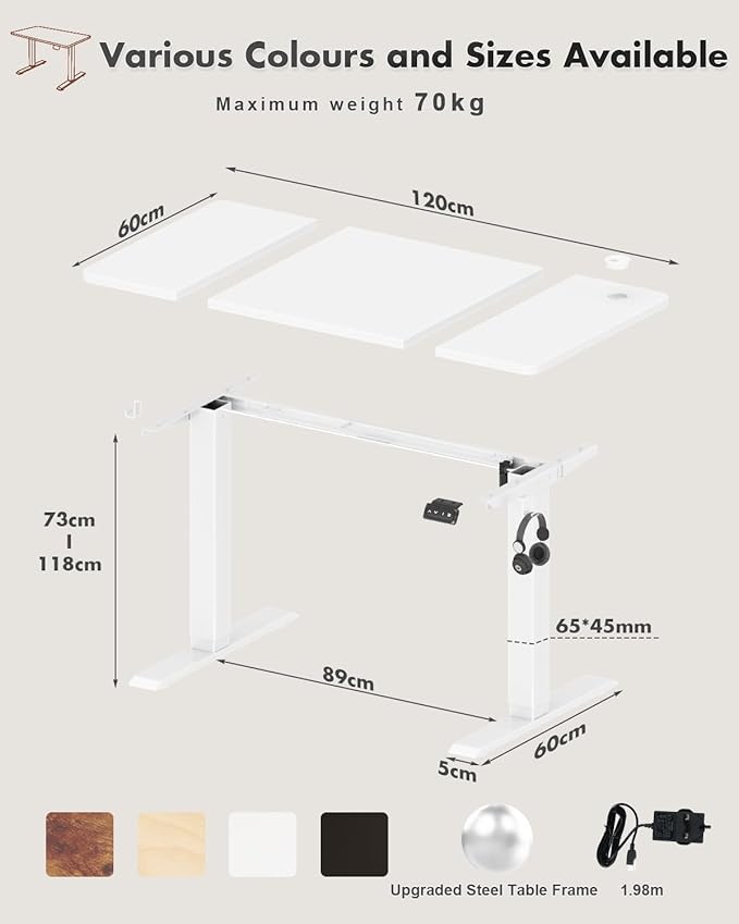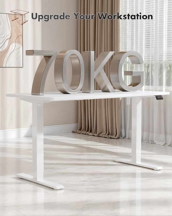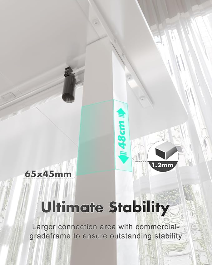 ð®ãLeading Stability and DurabilityãWe use 60mm wide industrial grade alloy columns, reliable connection with 15mm thickened spliced desktop. 70KG excellent load-bearing capacity, wide T-shaped legs designed to make the desk at the highest height can also maintain good stability, lifting and lowering the process of silky smooth and noiseless †45db, the table legs have a rust-resistant galvanised coating for you to save cleaning time at the same time more durable!