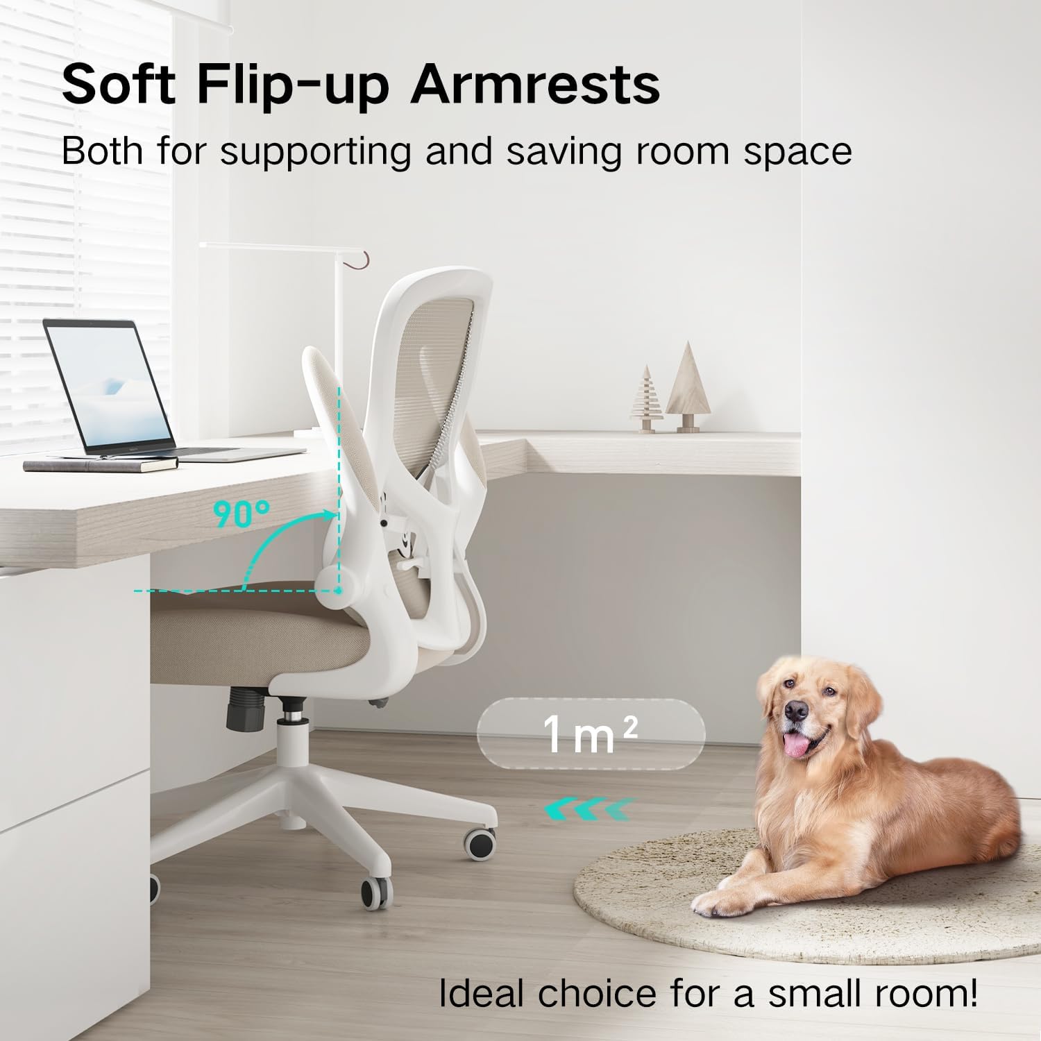 Hbada Ergonomic Desk Chair, Computer Office Chair with Flip-up Armrest&Lumbar Support, Adjustable Height, Grey