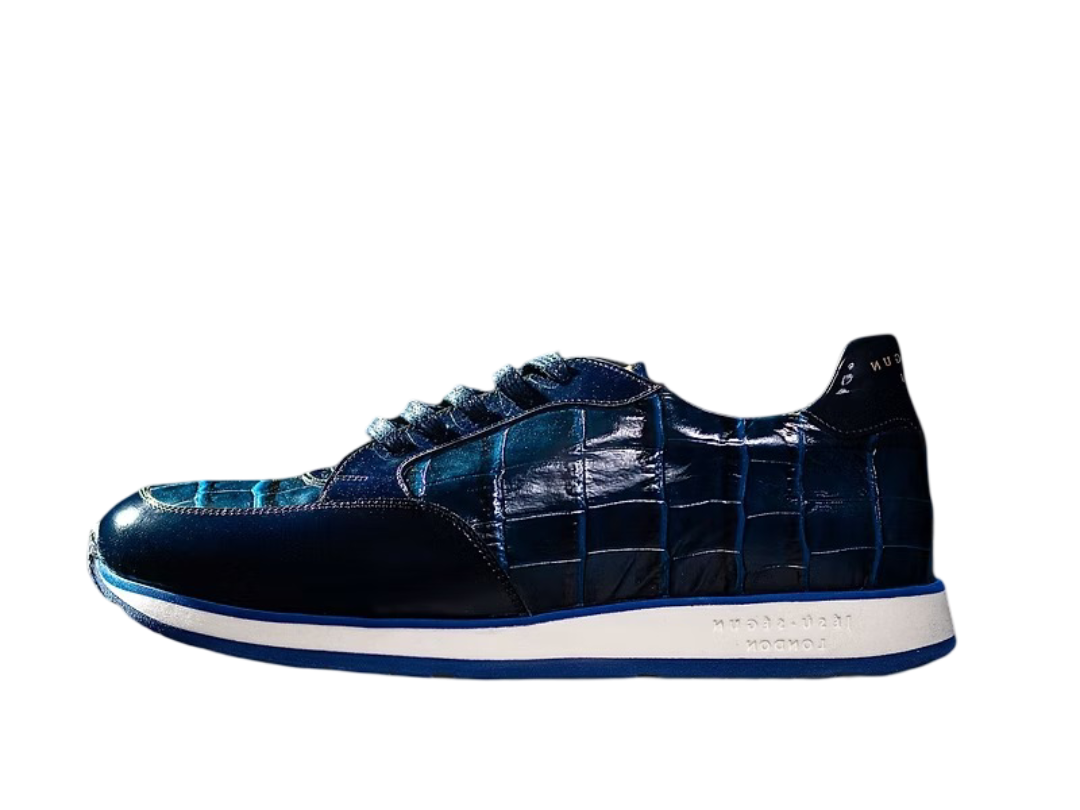 Discover the perfect blend of luxury and comfort with our sleek Blu crocodile-embossed sneakers. Crafted from premium materials, these shoes feature a striking glossy finish that adds a touch of modern elegance to your casual wardrobe. The unique embossed texture not only enhances their aesthetic appeal but also ensures durability.