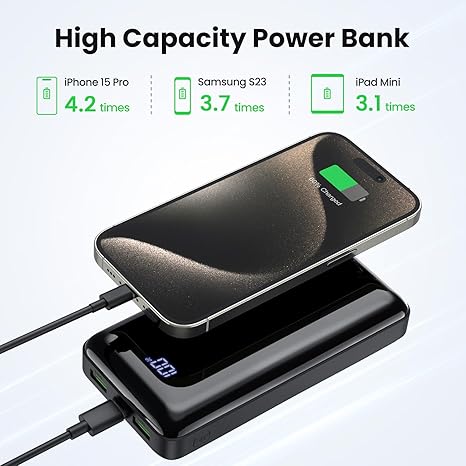 • 【Super fast charging】Experience the power of 22.5W ultra-fast charging with this power bank, allowing you to recharge your phone by over 61% in just 30 minutes.​ The fast charging function of the portable power bank significantly reduces the charging time of the device