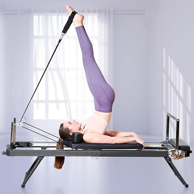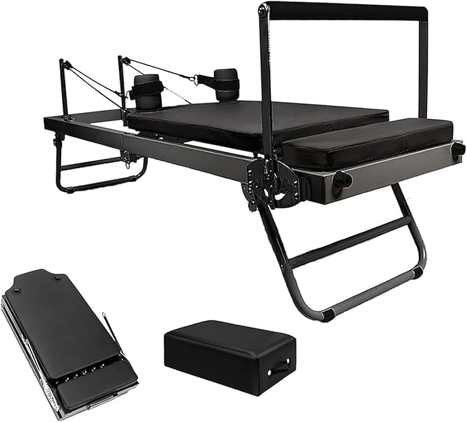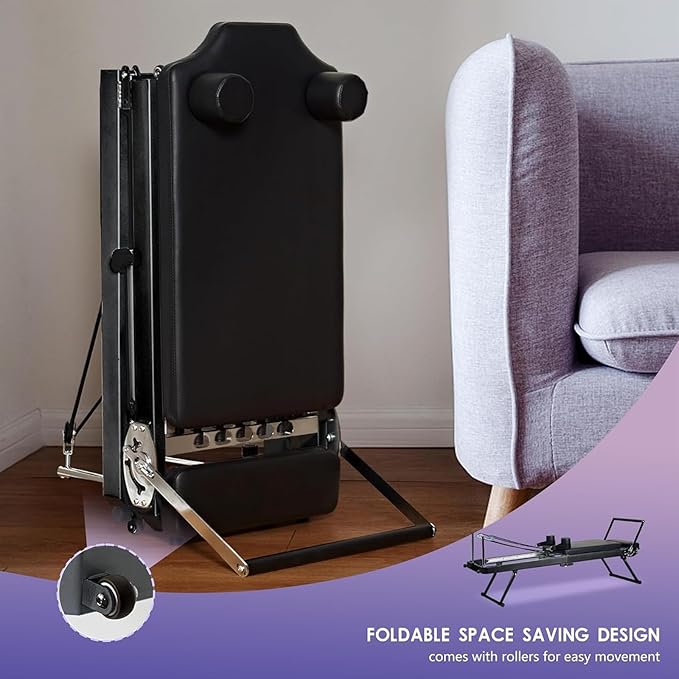 - Folding Design: With 95% pre-assembly, this foldable Pilates reformer machine is exceptionally easy to set up and fold, reducing hassle and saving time. You can fold the machine in half and store it in any corner of your room.